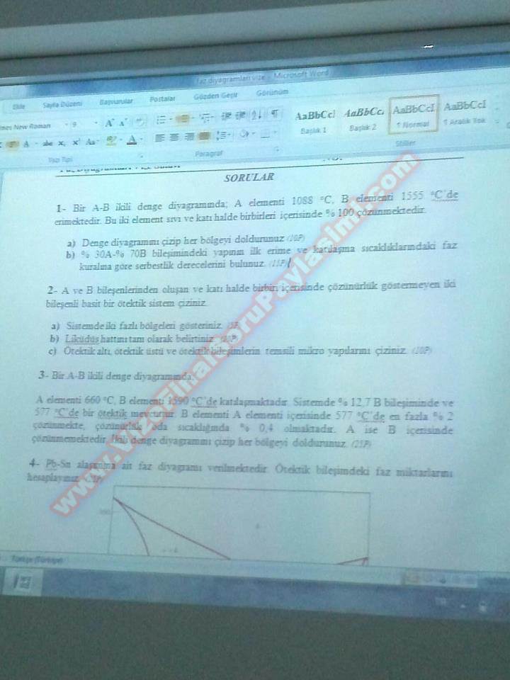 Vize ve Final Soruları / Afyon Kocatepe Üniversitesi / Faz Diyagramları Dersi
