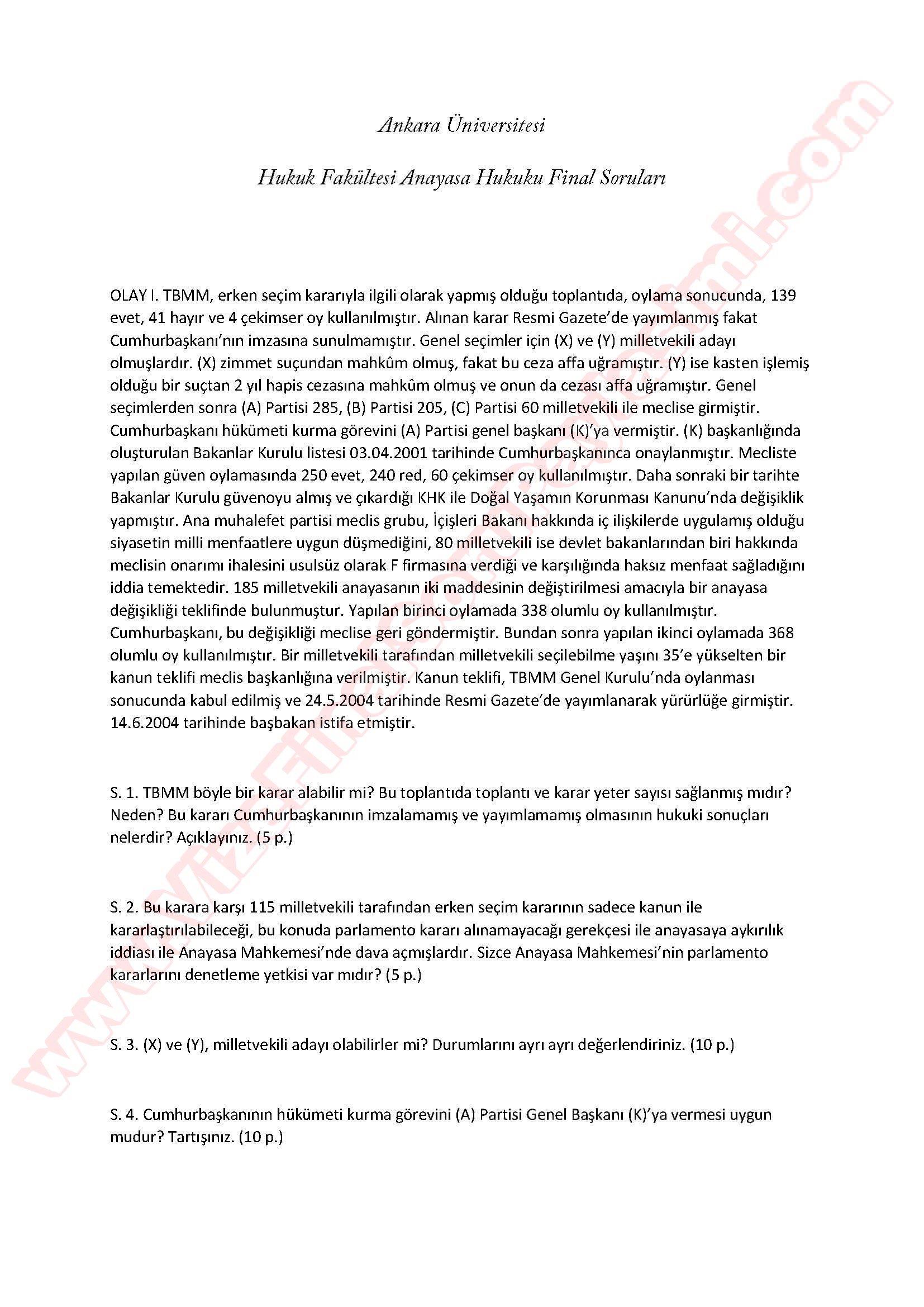 Vize ve Final Soruları / Ankara Üniversitesi / Anayasa Hukuku Dersi