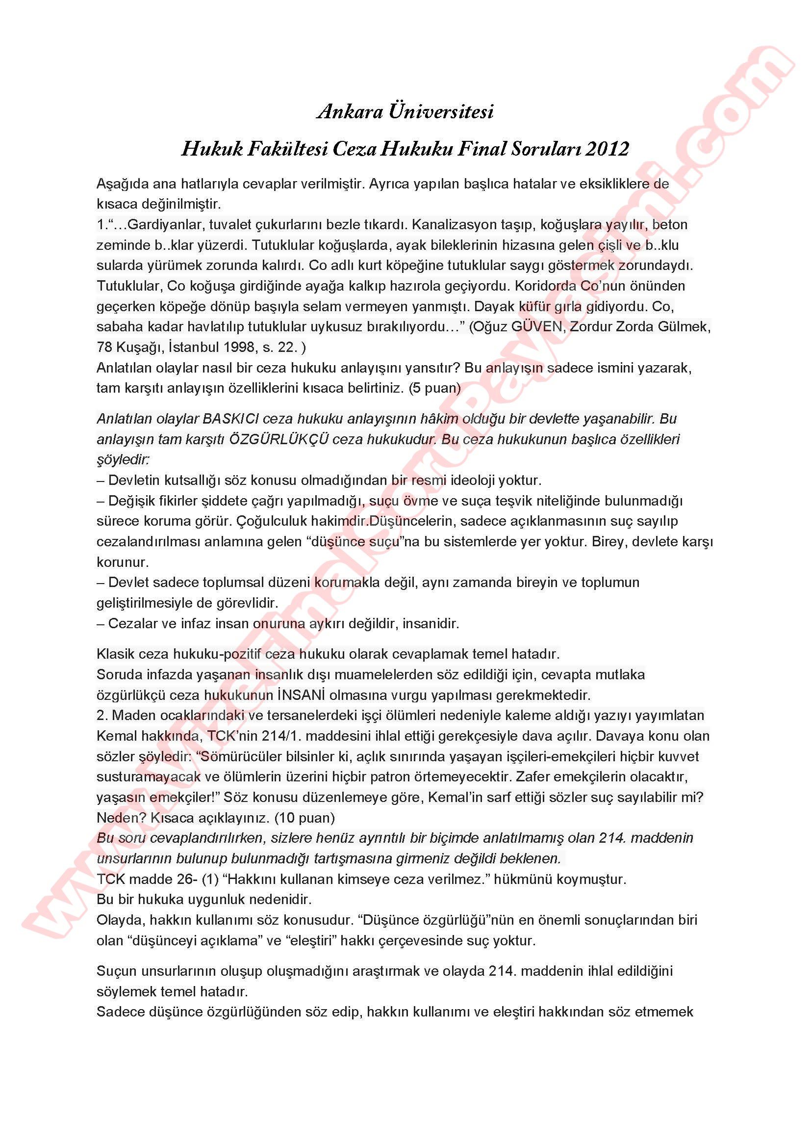 Vize ve Final Soruları / Ankara Üniversitesi / Ceza Hukuku Dersi