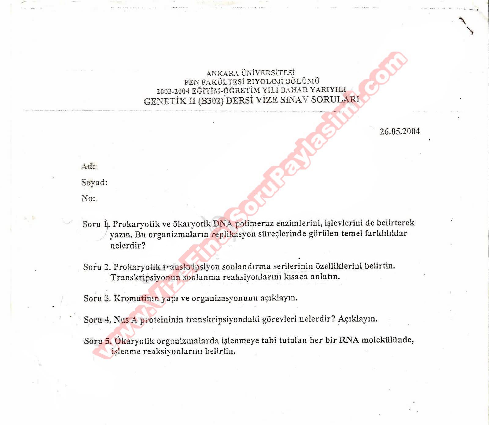 Genetik Dersi Vize Soruları 21-07-2014, 02:42