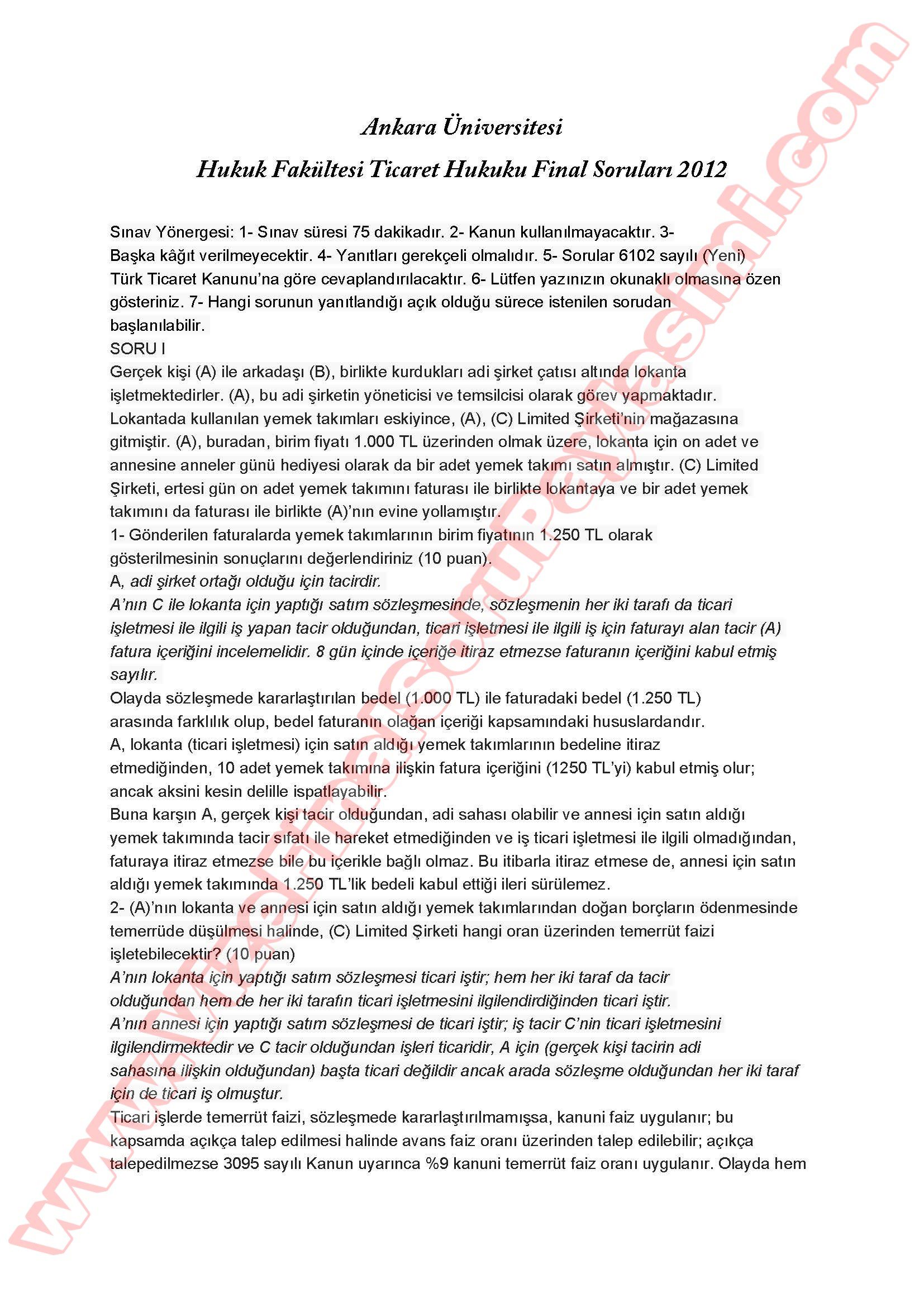 Ticaret Hukuku Final Soruları Ve Cevapları - 2012