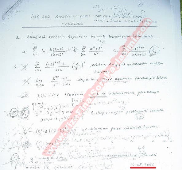 Vize ve Final Soruları / Gazi Üniversitesi / Analiz-4