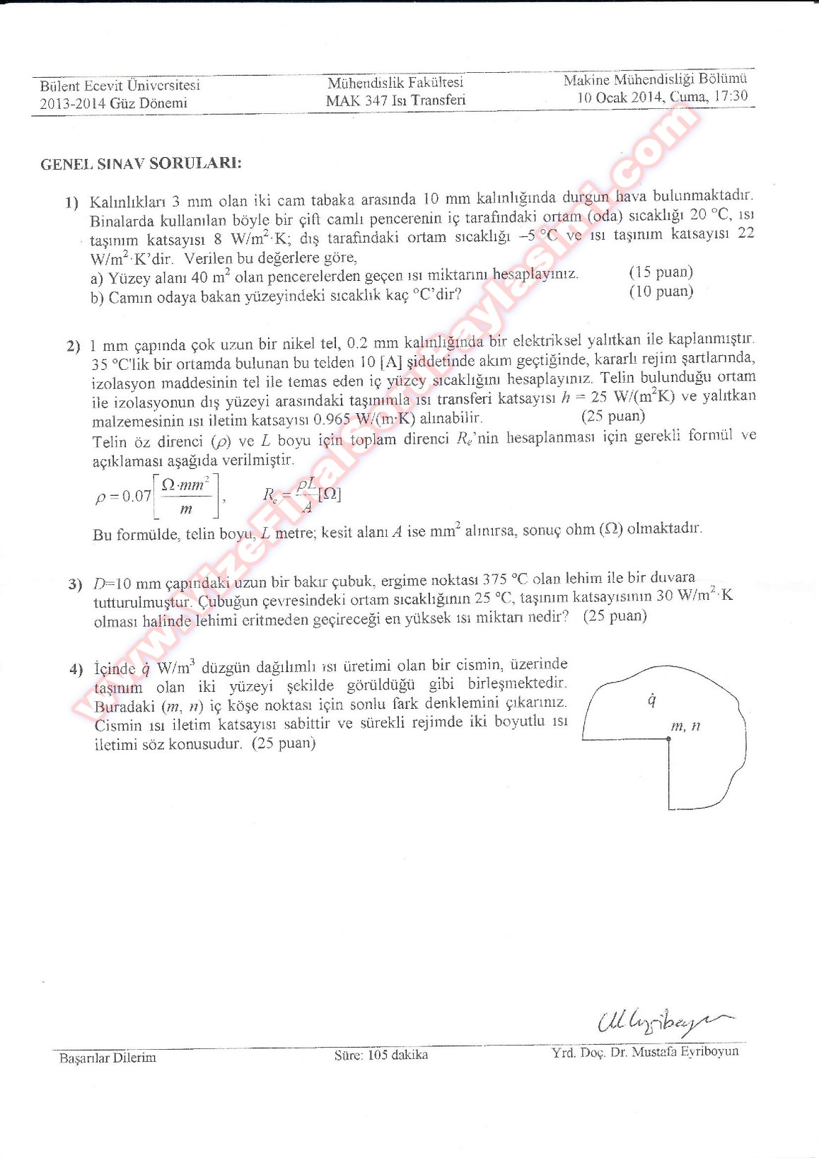 Vize ve Final Soruları / Bülent Ecevit Üniversitesi / Isı Transferi Dersi
