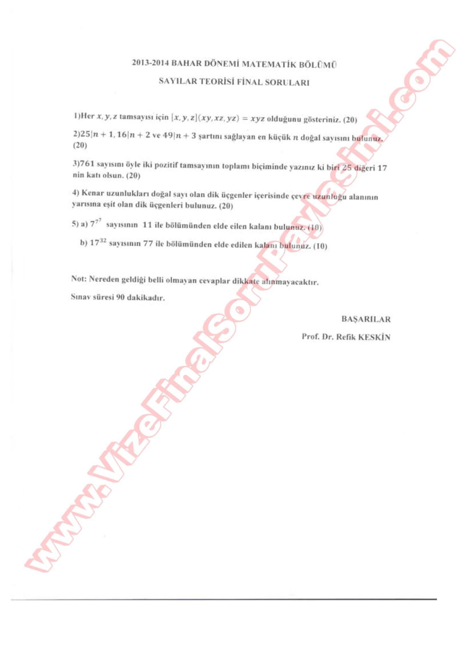 Sayılar Teorisi Final Soruları Ve Cevapları - 2014