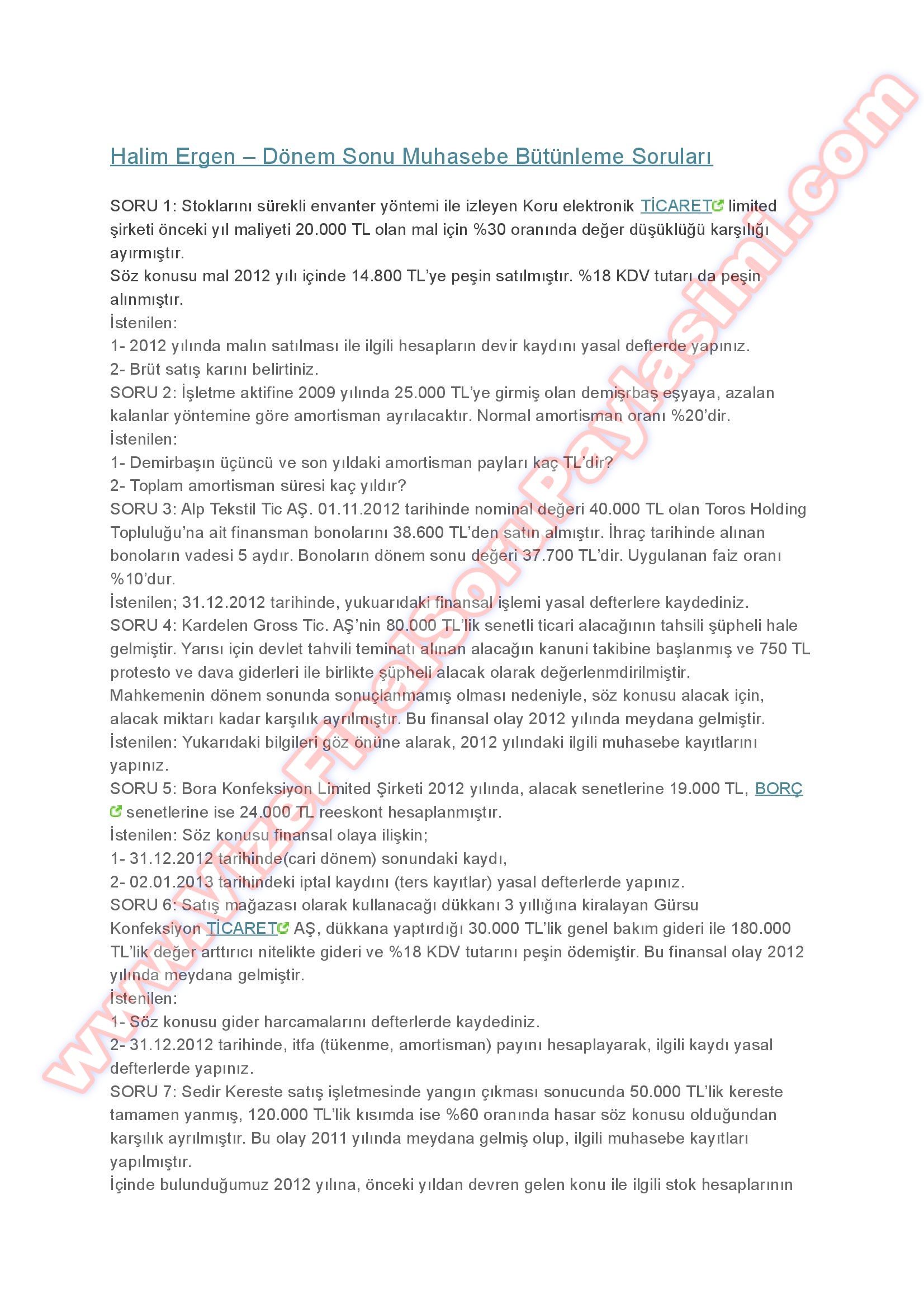 Vize ve Final Soruları / Gazi Üniversitesi / Muhasebe Dersi