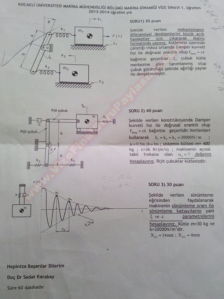 Vize ve Final Soruları / Kocaeli Üniversitesi / Makina Dinamiği