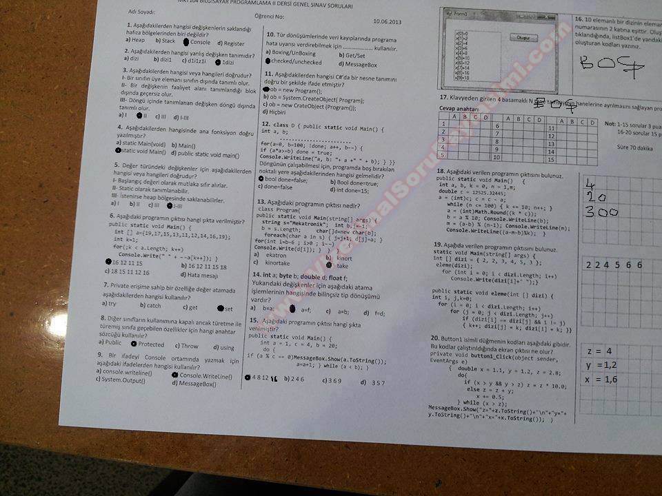 Vize ve Final Soruları / Fırat Üniversitesi / C Sharp Bilgisayar Programlama 2