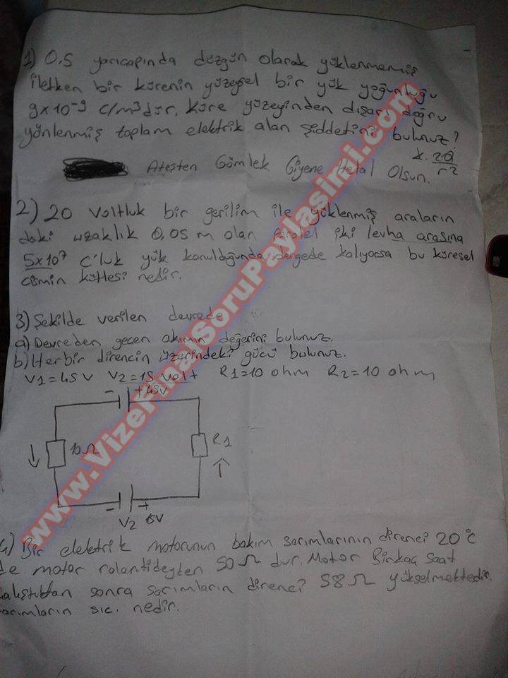 Fizik-2 Sınav Soruları - Mek. Mühendisliği 1-02-2015, 21:10