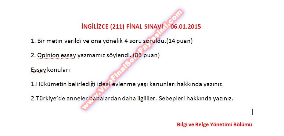 İngilizce Final Soruları - 07.01.2015
