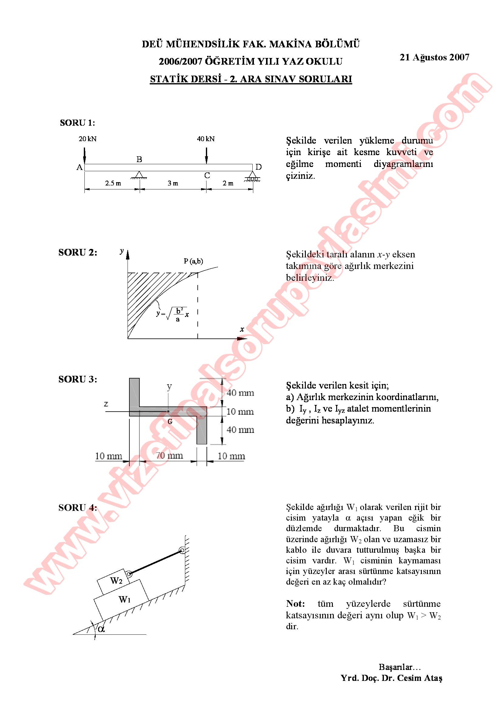 Vize ve Final Soruları / Dokuz Eylül Üniversitesi / Statik Dersi