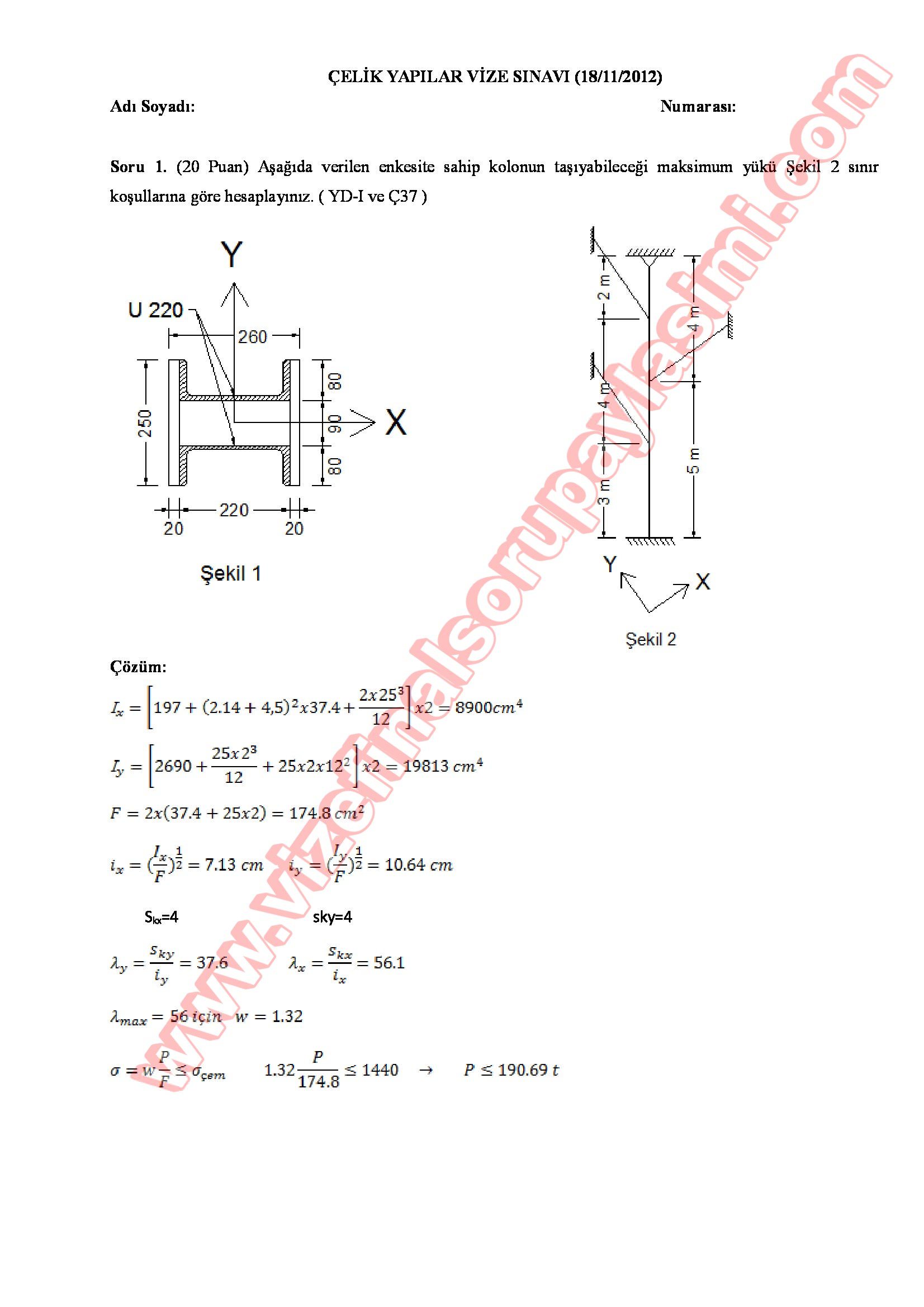 Çelik Yapılar Vize Soruları Ve Cevapları - 18.11.2012