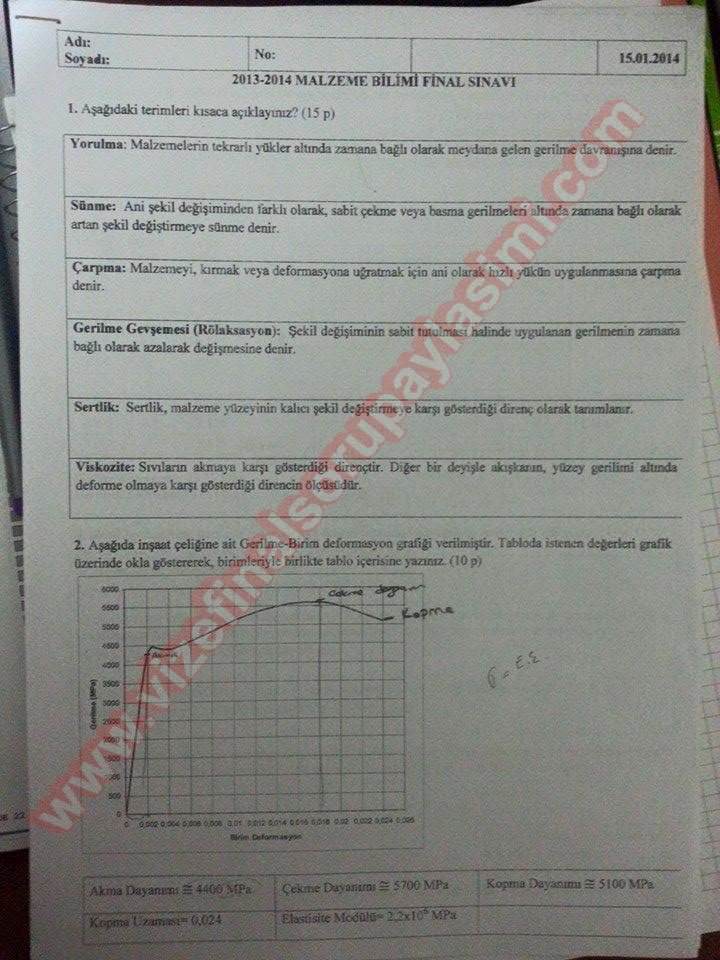 Malzeme Bilimi Final Soruları Ve Cevapları - 15.01.2014