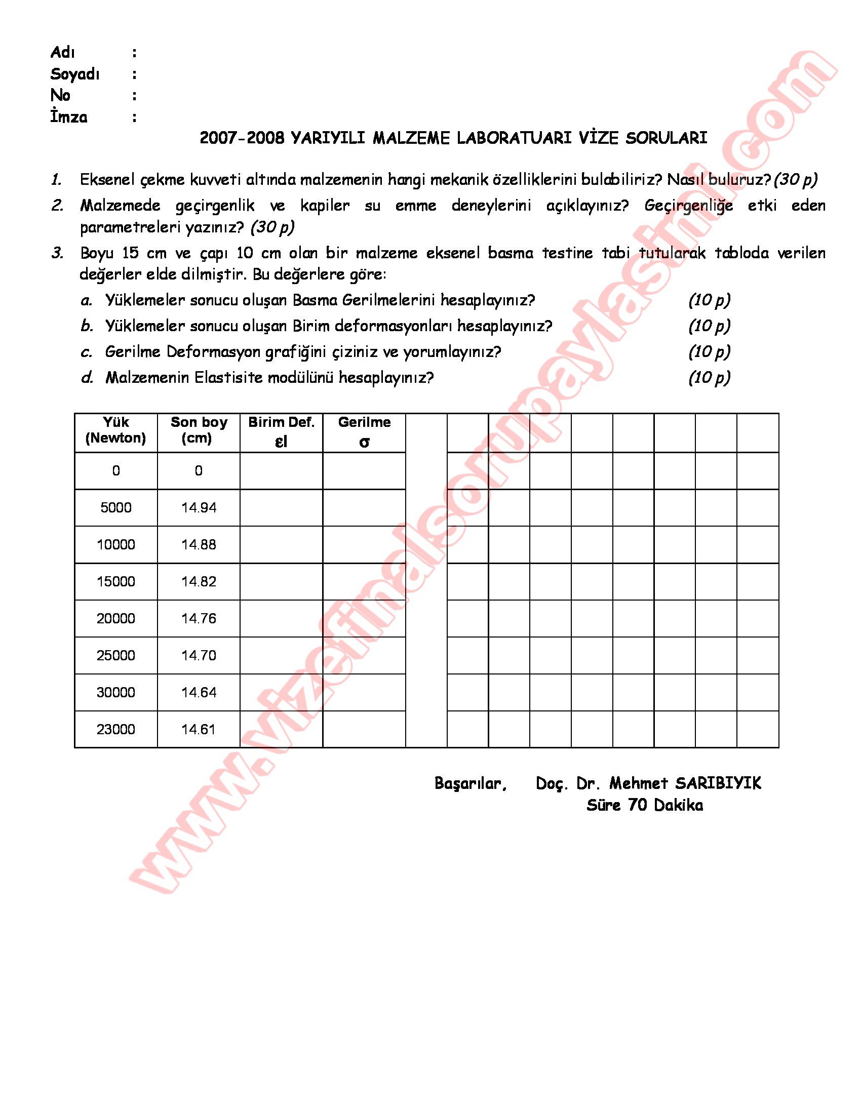 Vize ve Final Soruları / Sakarya Üniversitesi / Malzeme Laboratuvarı Dersi