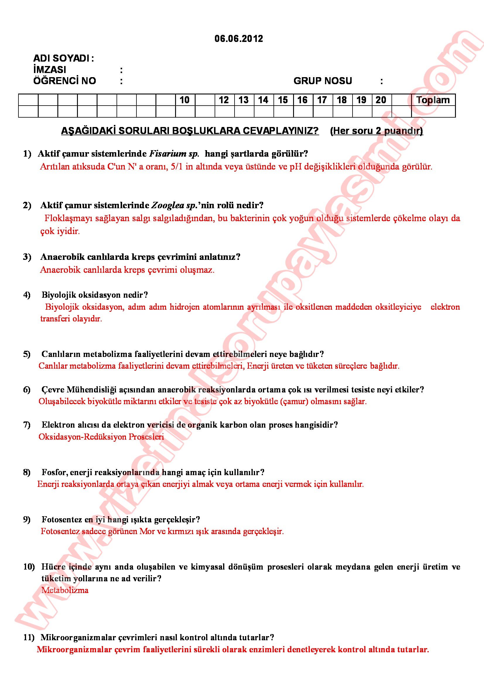 Çevre Mikrobiyolojisi 2 Final Soruları Ve Cevapları - 06.06.2012