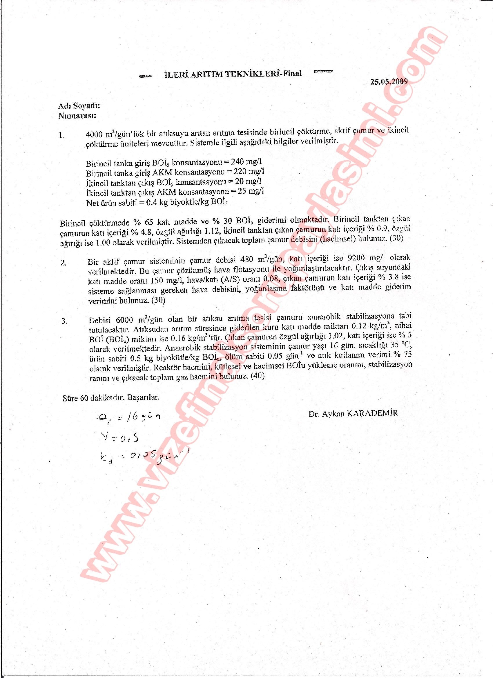Vize ve Final Soruları / Kocaeli Üniversitesi / İleri Arıtım Teknikleri Dersi