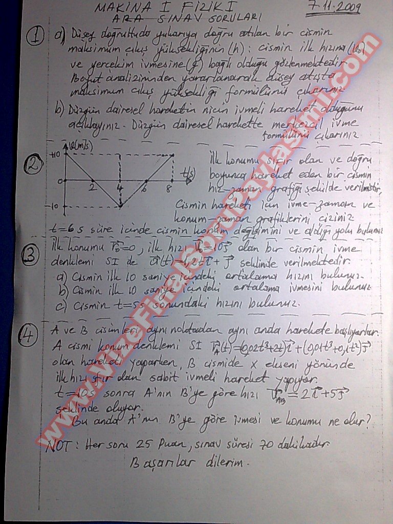 Vize ve Final Soruları / Kocaeli Üniversitesi / Fizik-1