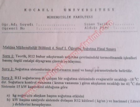 Vize ve Final Soruları / Kocaeli Üniversitesi / Soğutma Tekniği Dersi