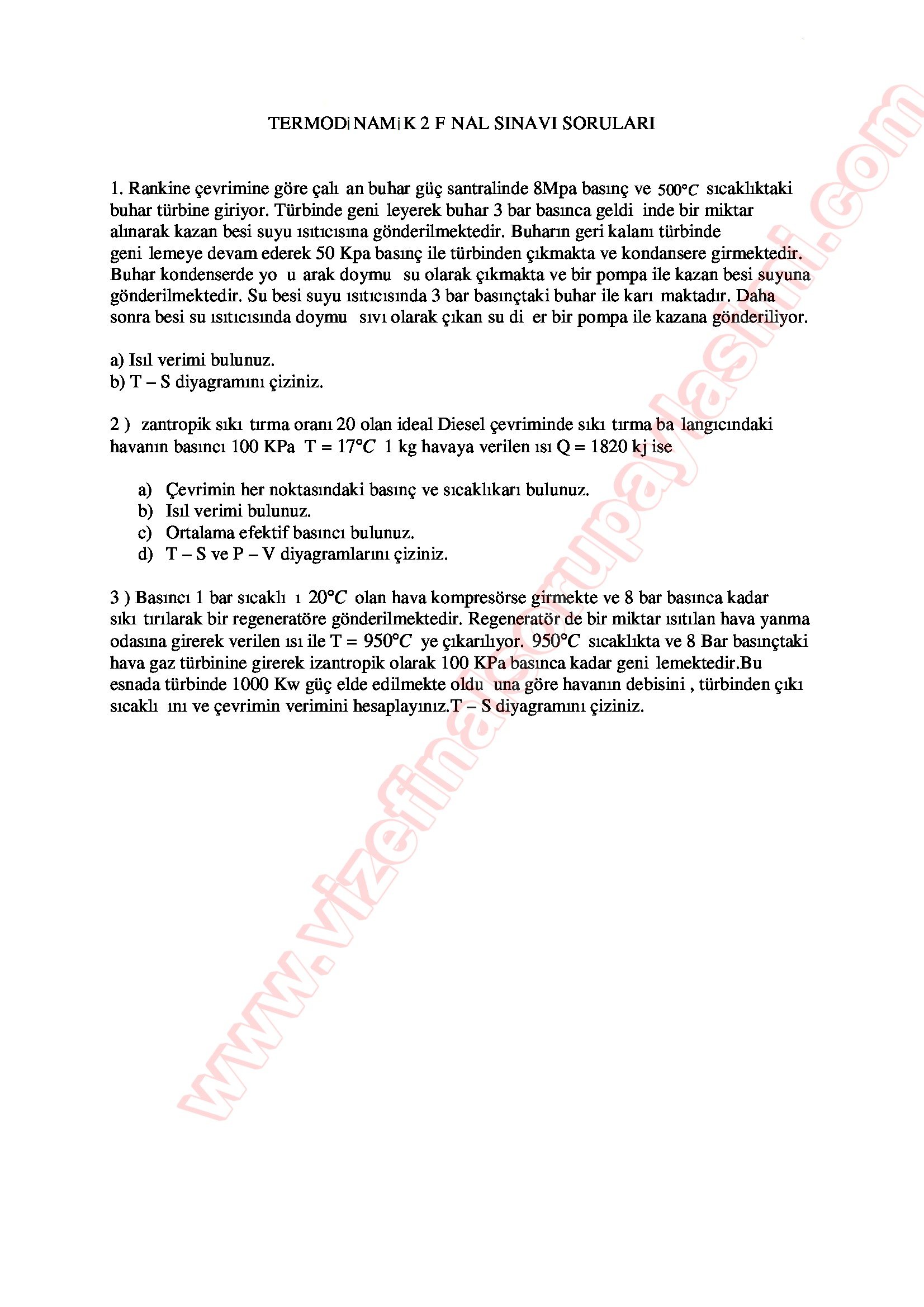 Vize ve Final Soruları / Kocaeli Üniversitesi / Termodinamik-2