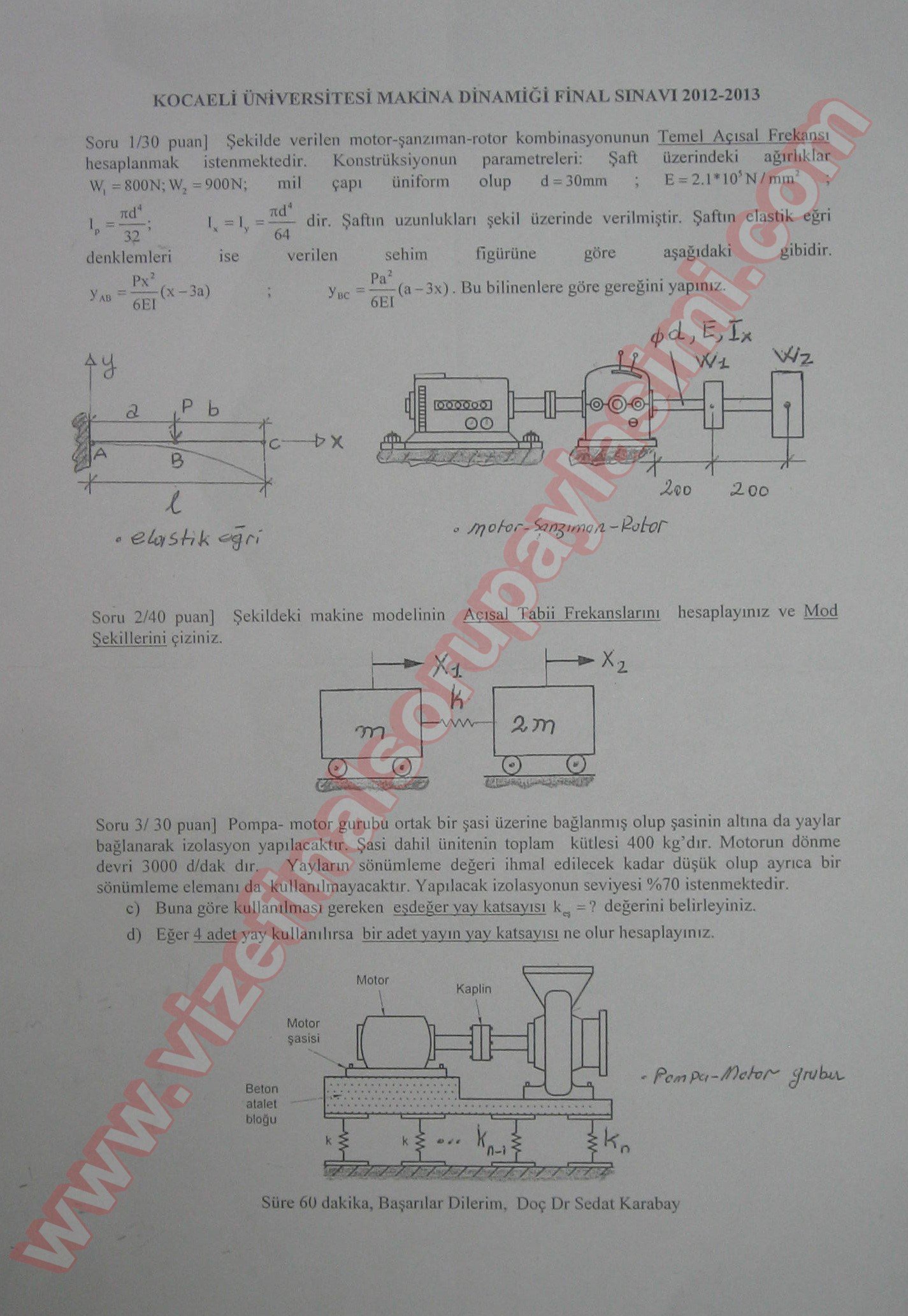 Vize ve Final Soruları / Kocaeli Üniversitesi / Makina Dinamiği