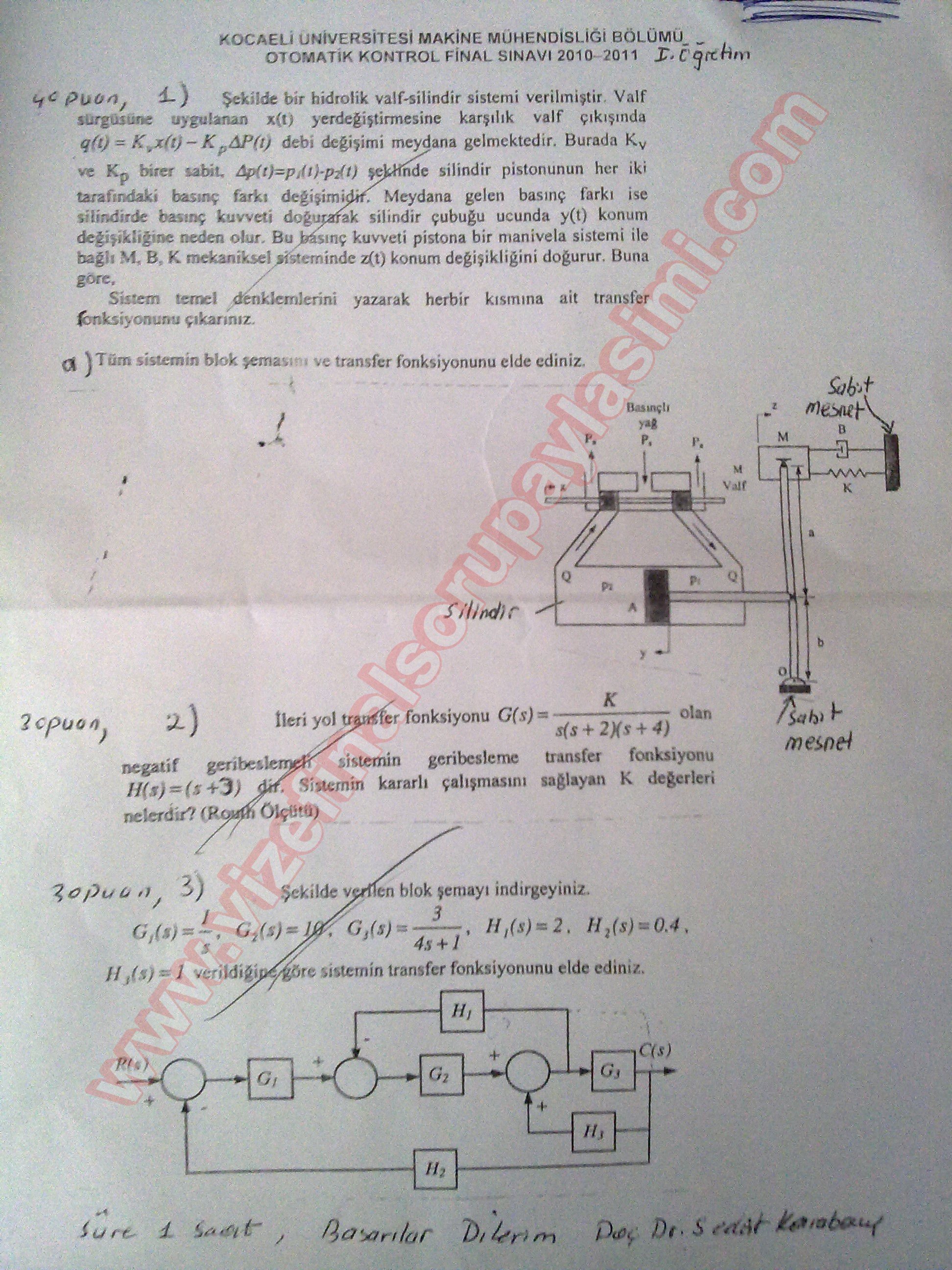 Vize ve Final Soruları / Kocaeli Üniversitesi / Otomatik Kontrol Dersi