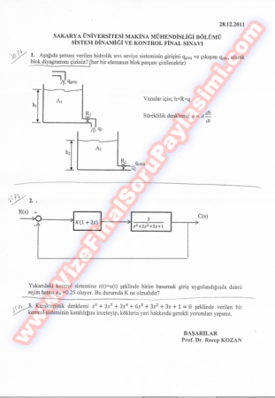 Sistem Dinamiği Ve Kontrol Final Soruları-2011 4-11-2014, 13:45