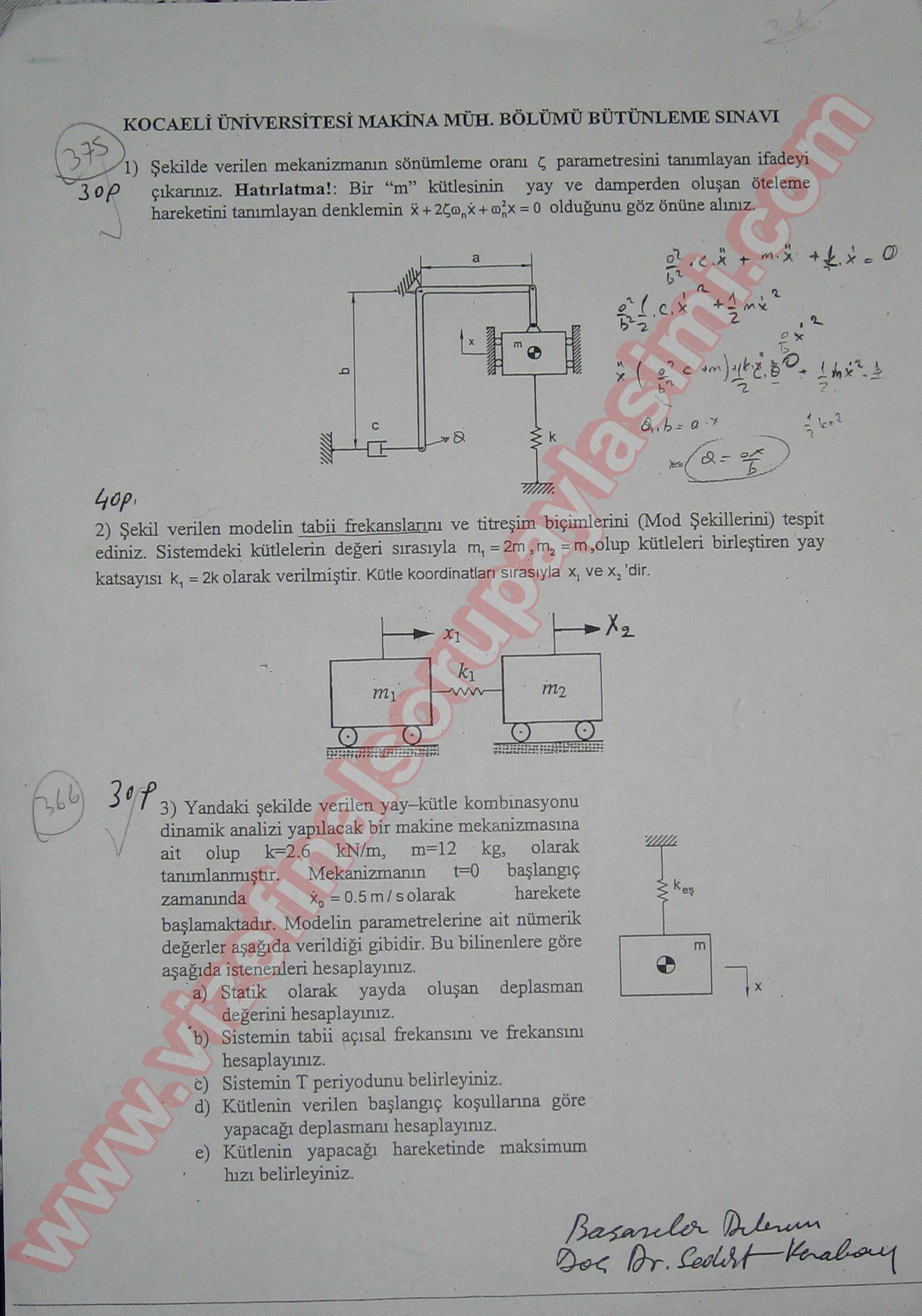 Vize ve Final Soruları / Kocaeli Üniversitesi / Makina Dinamiği