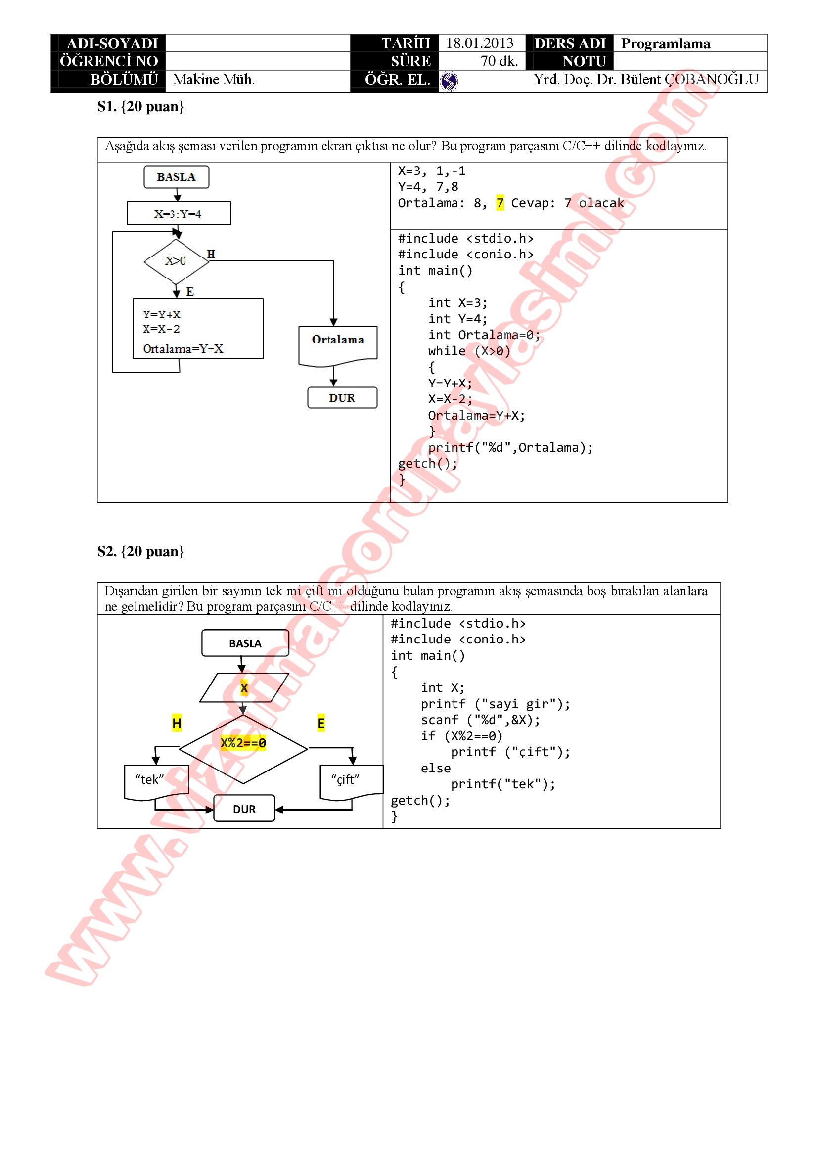 Algoritma Ve Programlama Bütünleme Soruları Ve Cevapları - 18.01.2013