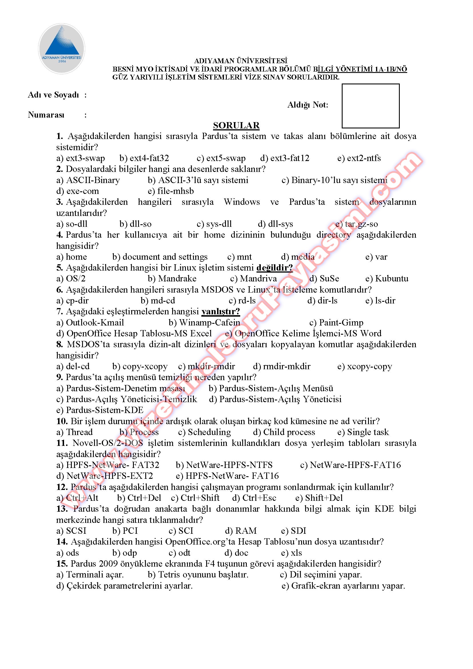 isletim sistemleri dersi vize sorulari cozumlu sorular adiyaman GERİ DÖN-