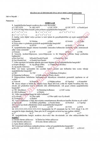 Bilgisayar Ağ Sistemleri Dersi Final Soruları 16-03-2015, 14:52