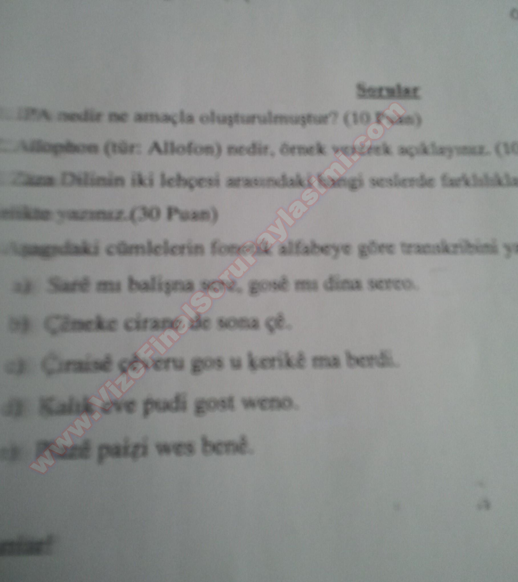 Vize ve Final Soruları / Tunceli Üniversitesi / Fonetik Trankripsiyon Dersi