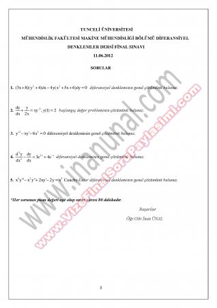 Tunceli Üniversitesi Mühendislik Matematiği Diferansiyel Denklemler -Vize Soruları 21-07-2014, 02:08