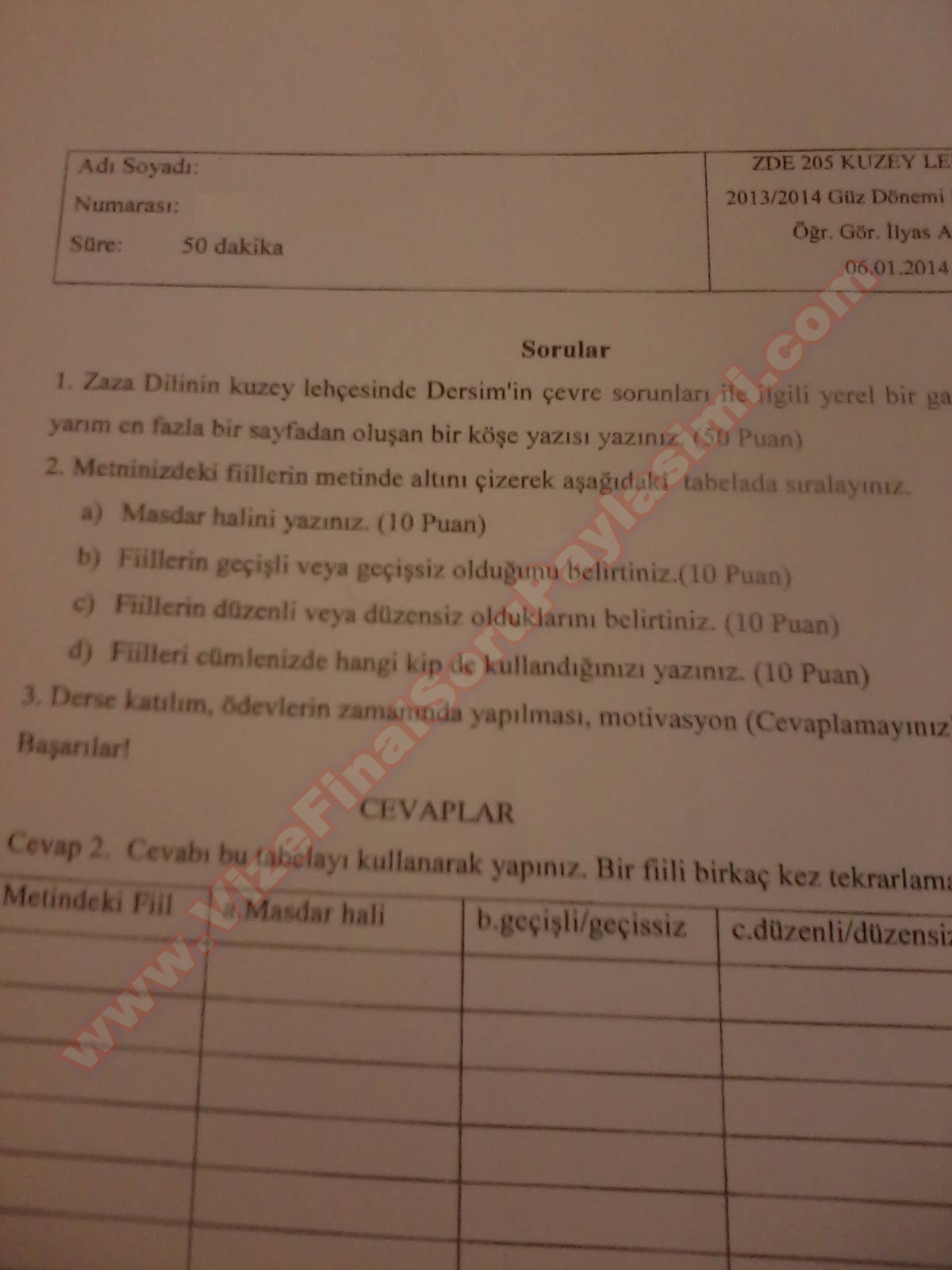 Vize ve Final Soruları / Tunceli Üniversitesi / Kuzey Lehçesi -1