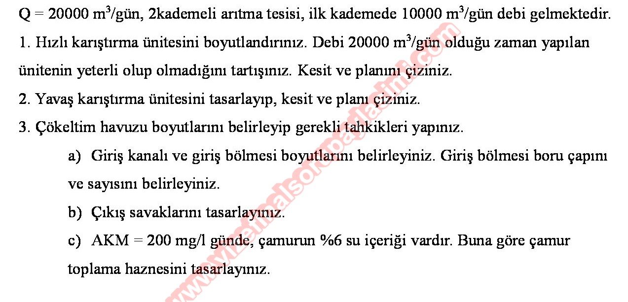 Atık Su Arıtma Tesisi Tasarımı Sınav Soruları 20-03-2015, 22:26