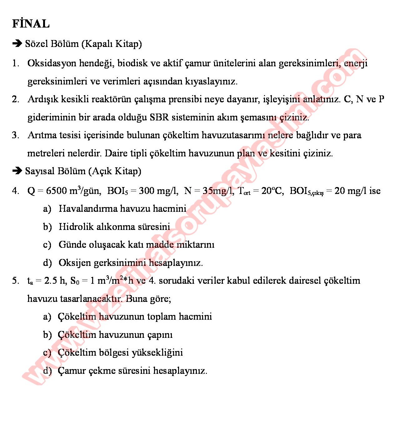 Vize ve Final Soruları / Kocaeli Üniversitesi / Kullanılmış Suların Arıtımı Dersi