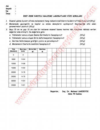 Malzeme Laboratuvarı Vize Soruları 24-02-2015, 22:54