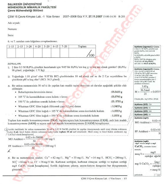 Vize ve Final Soruları / Balıkesir Üniversitesi / Çevre Kimyası Laboratuvarı -1