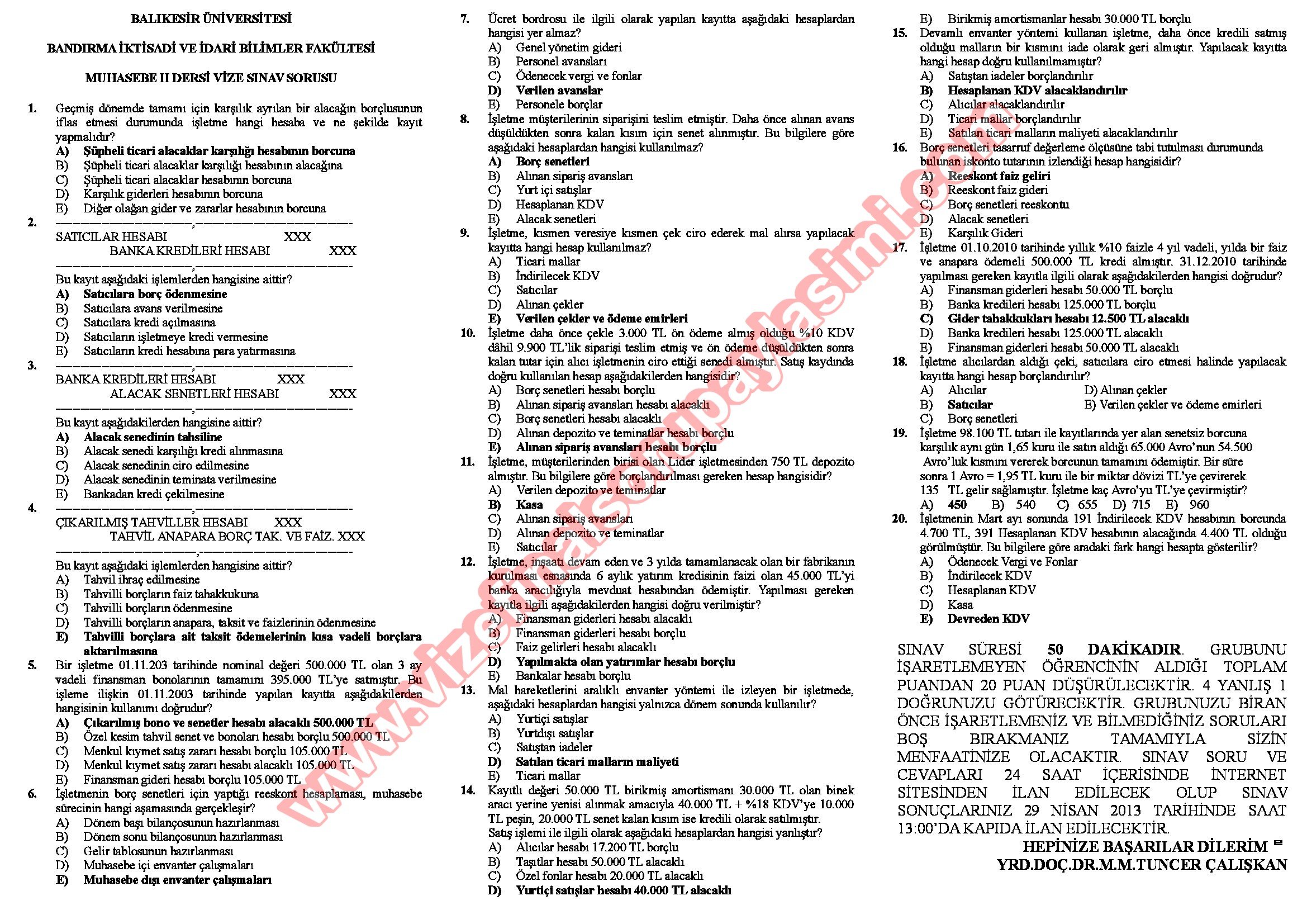 Vize ve Final Soruları / Balıkesir Üniversitesi / Muhasebe -2