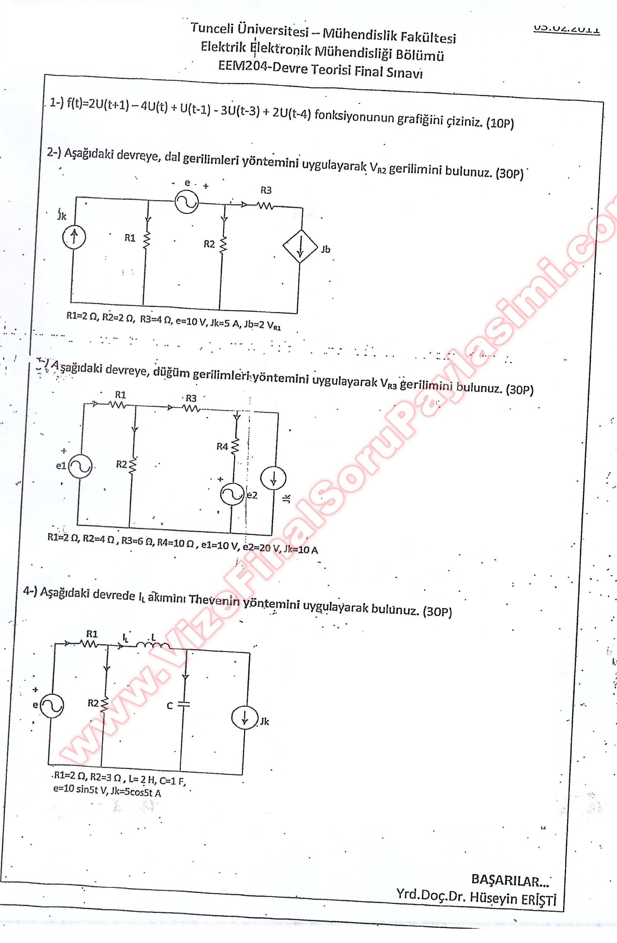 Vize ve Final Soruları / Tunceli Üniversitesi / Devre Teorisi Dersi