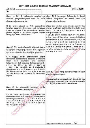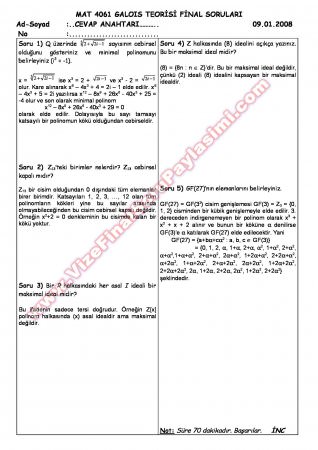 Galois Teorisi Vize Soruları - 2008 18-10-2014, 00:39