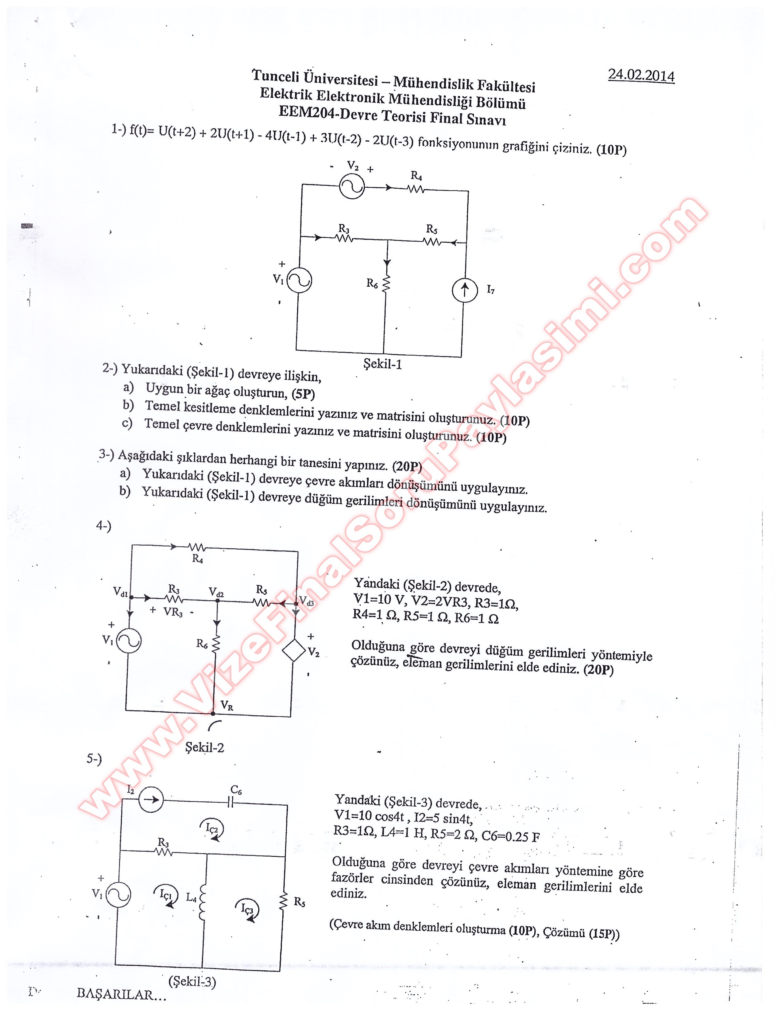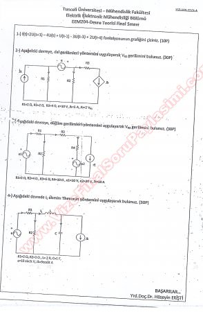 Vize ve Final Soruları / Tunceli Üniversitesi / Devre Teorisi Dersi