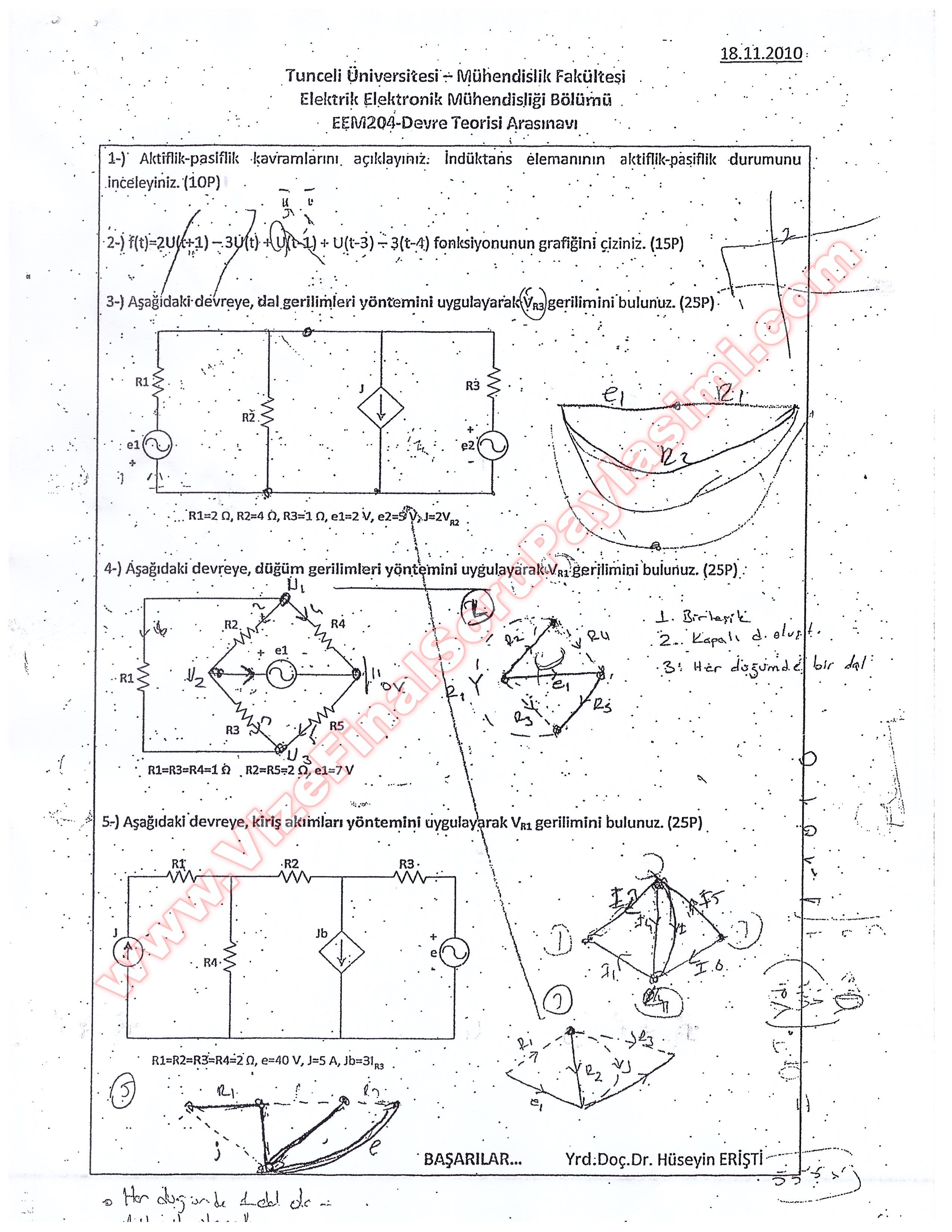 Vize ve Final Soruları / Tunceli Üniversitesi / Devre Teorisi Dersi