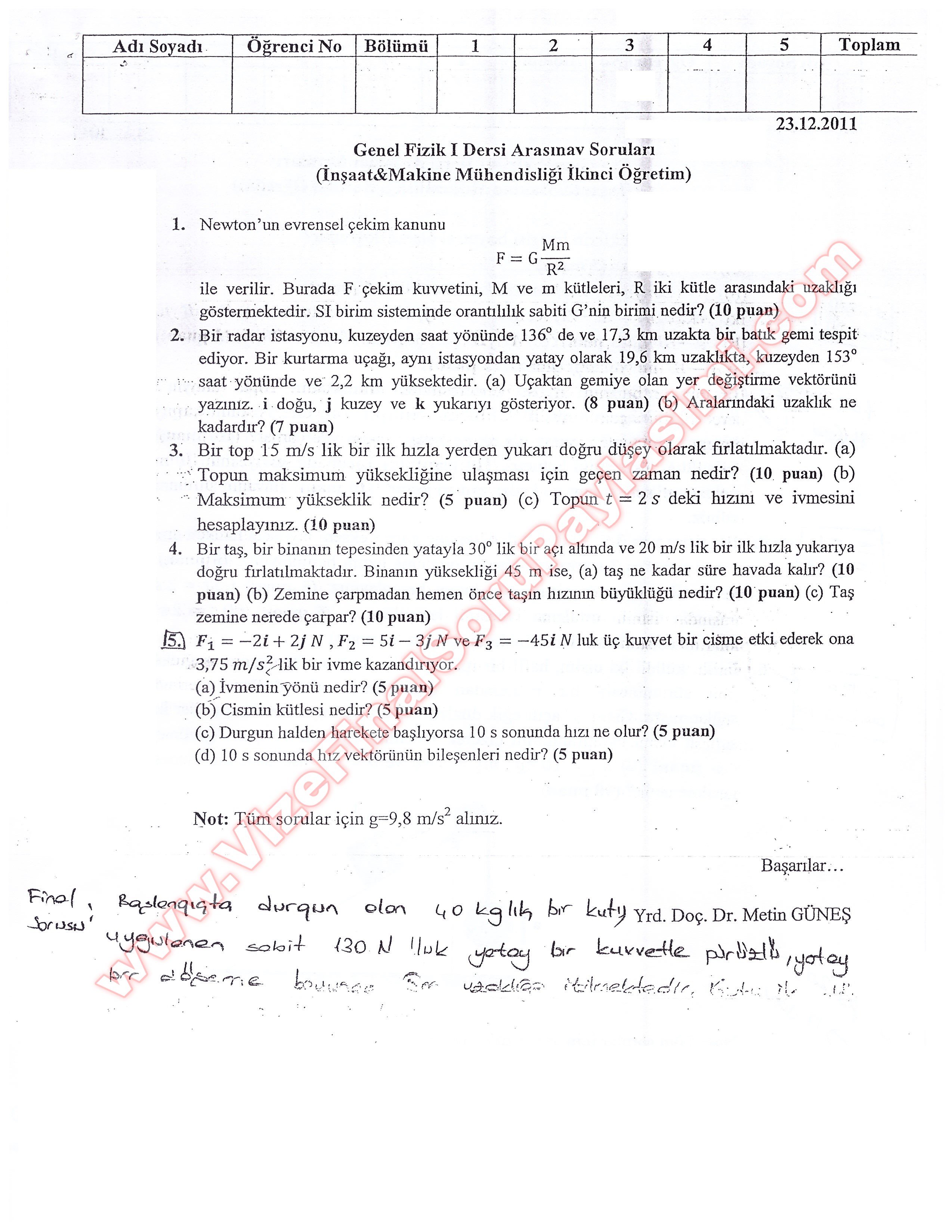 Genel Fizik 1 Final Sınav Soruları Çevre Mühendisliği 2011 26-03-2015, 05:59