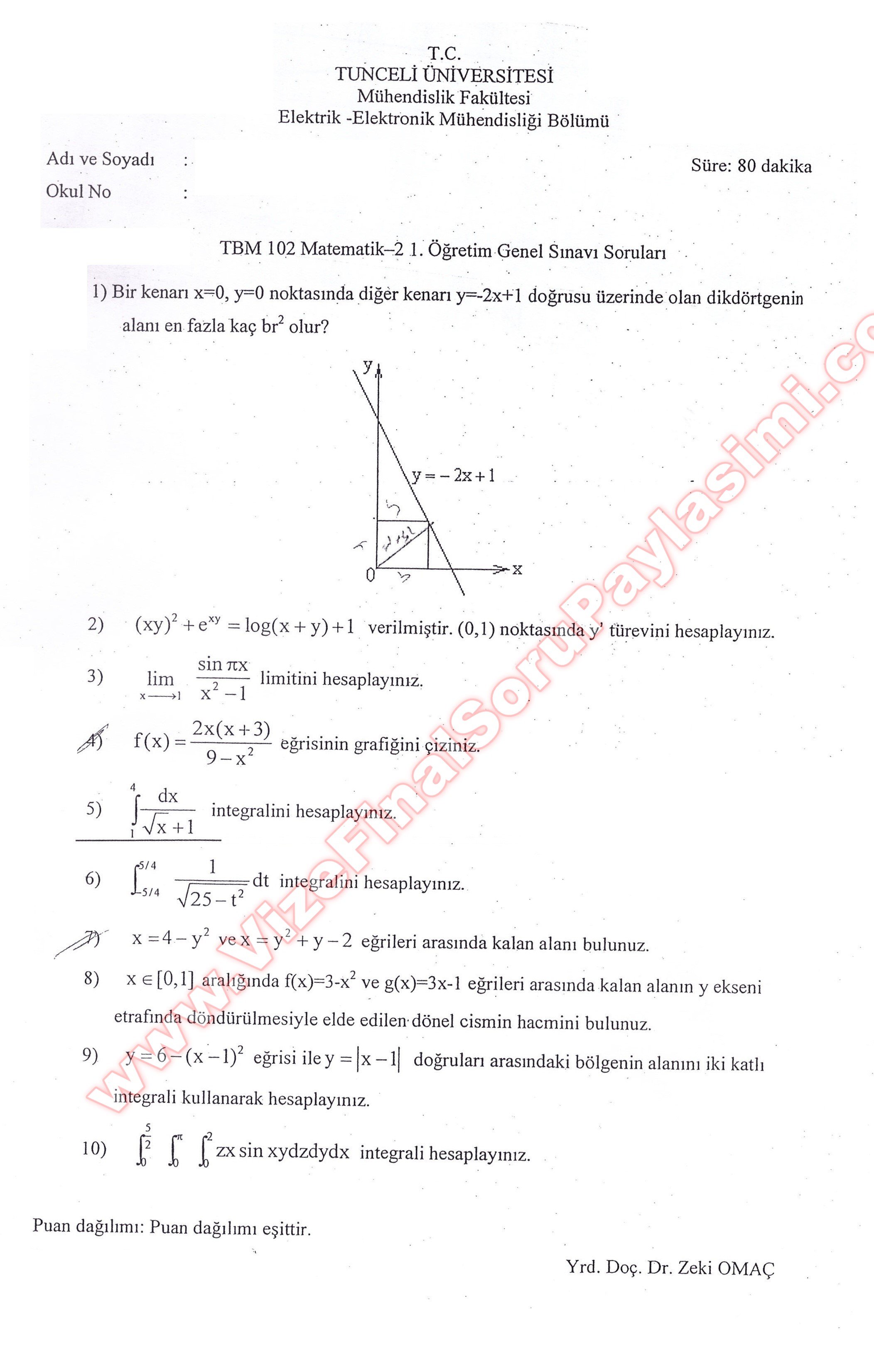 Vize ve Final Soruları / Tunceli Üniversitesi / Matematik-2