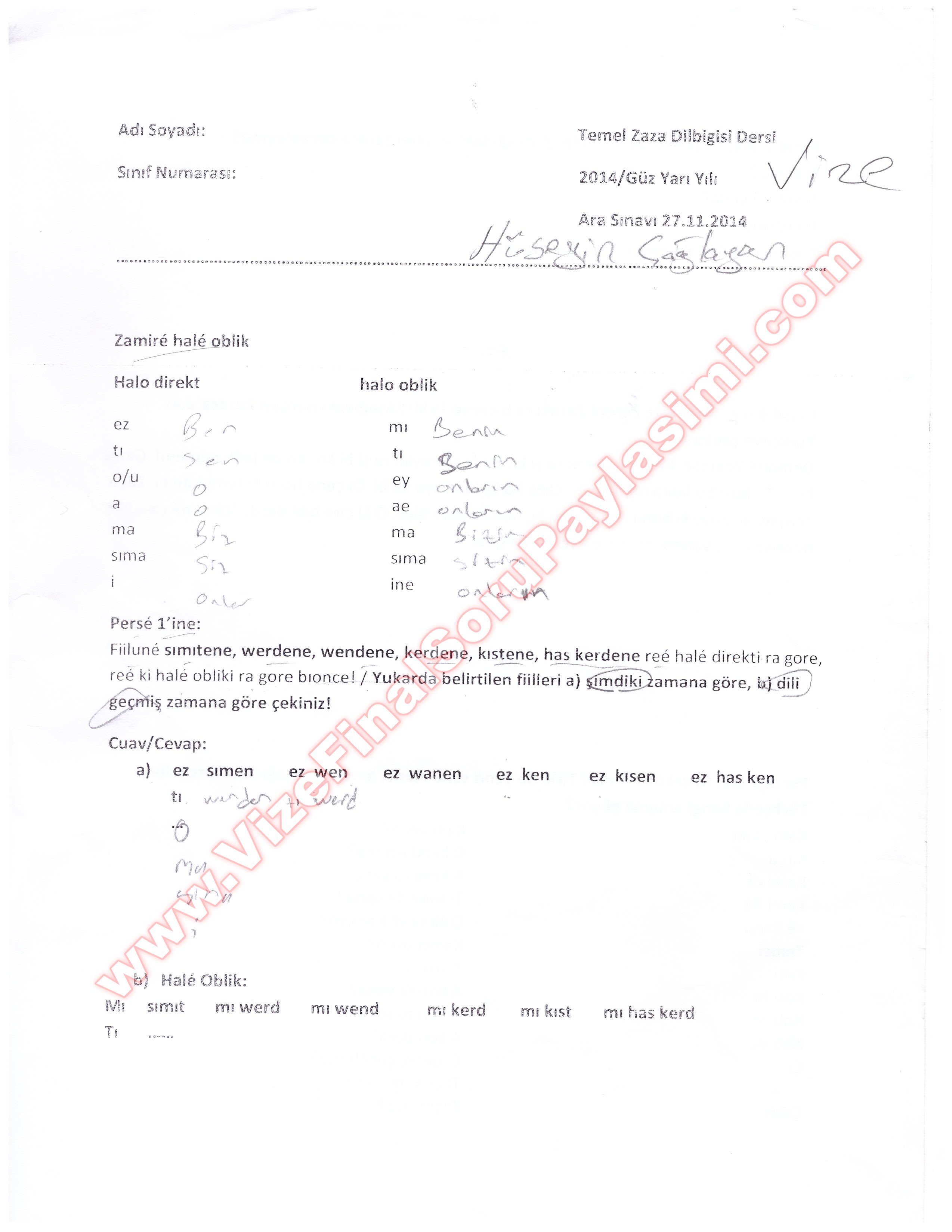 Vize ve Final Soruları / Tunceli Üniversitesi / Temel Zaza Dilbilgisi Dersi