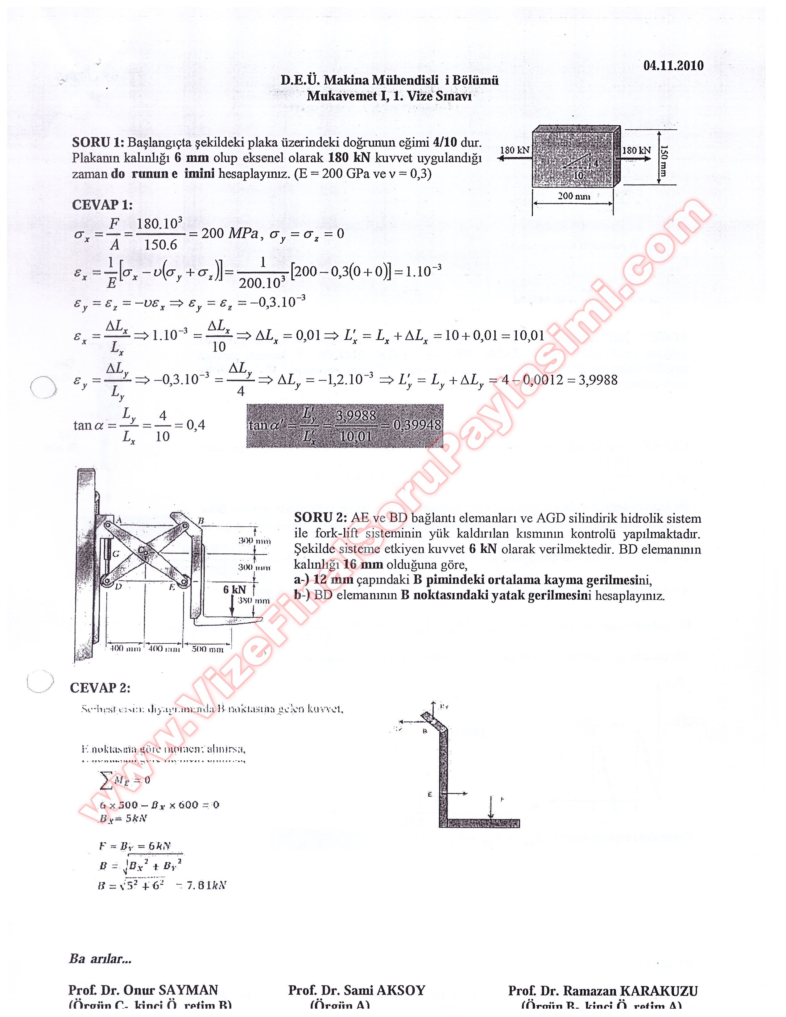 Mukavemet -1 Vize Soruları ve Çözümleri 2010