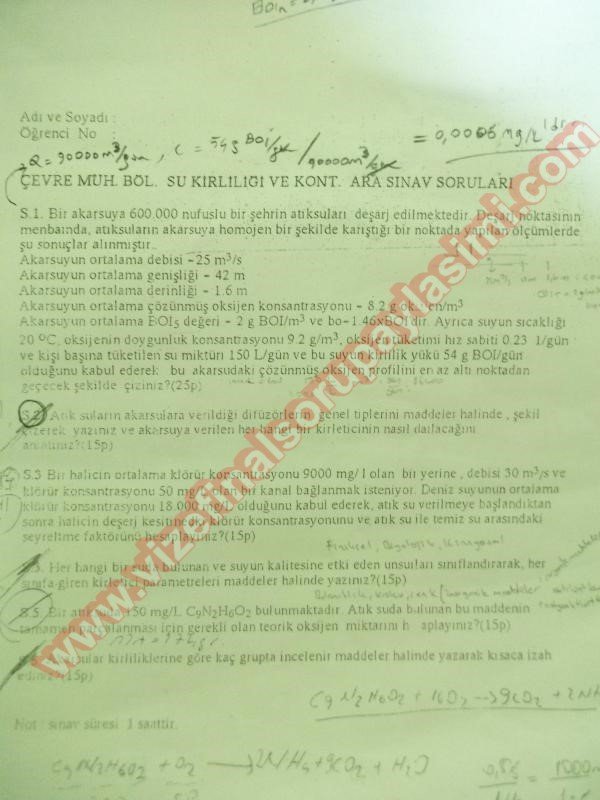 Su Kalitesi ve Kirliliği Final Soruları 6-01-2015, 02:16