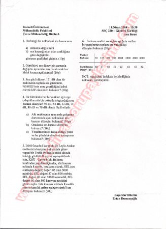 Gürültü Kirliliği Vize Soruları 2-03-2015, 13:57