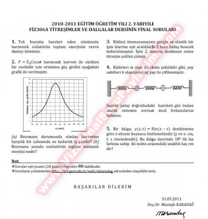 Mekanik Titreşimler Vize Soruları Ve Cevapları - 23.11.2011