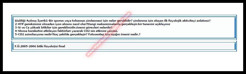 Vize ve Final Soruları / Fırat Üniversitesi / Bitki Fizyolojisi Dersi