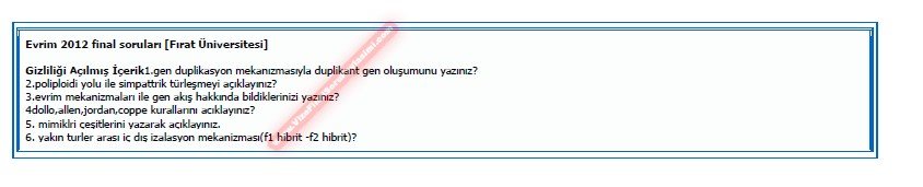 Vize ve Final Soruları / Fırat Üniversitesi / Evrim Dersi